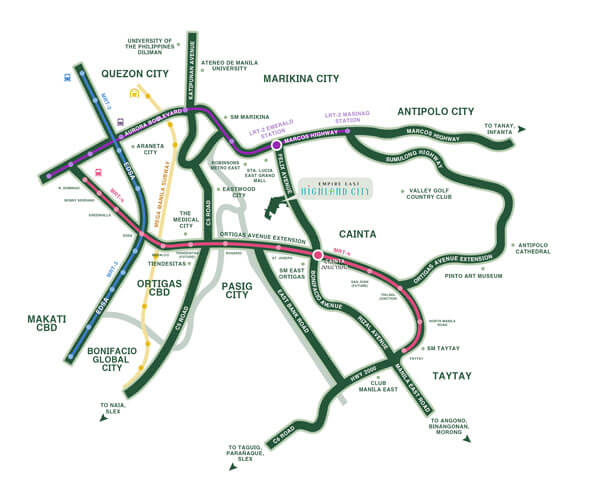 Empire East Highland City is envisioned to be the very first elevated city to rise in the Philippines. Every detail from its design and concept was created to fulfill the vision of becoming the highest development in Pasig-Cainta. This 24-hectare, Luxurious Uphill Community boasts of four grand phases – the Highland Park, the Highland Mall, the Highland Residences, and the Chartered Club.